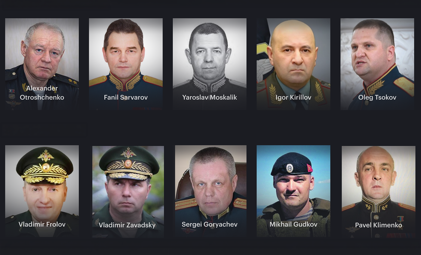 Among the Major Generals, the losses began in the opening weeks of the invasion. Andrei Sukhovetsky, deputy commander of the 41st Army, and Vladimir Frolov, deputy commander of the 8th Army, were both killed in early 2022. Roman Kutuzov died in June of that year in an attack on a troop formation.